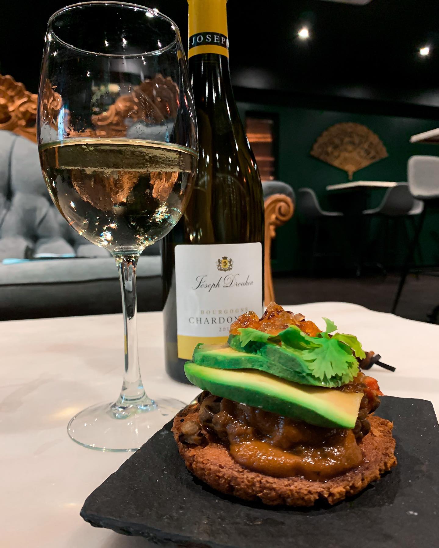 Bourbon wiskey, lime, foamer, Wine top